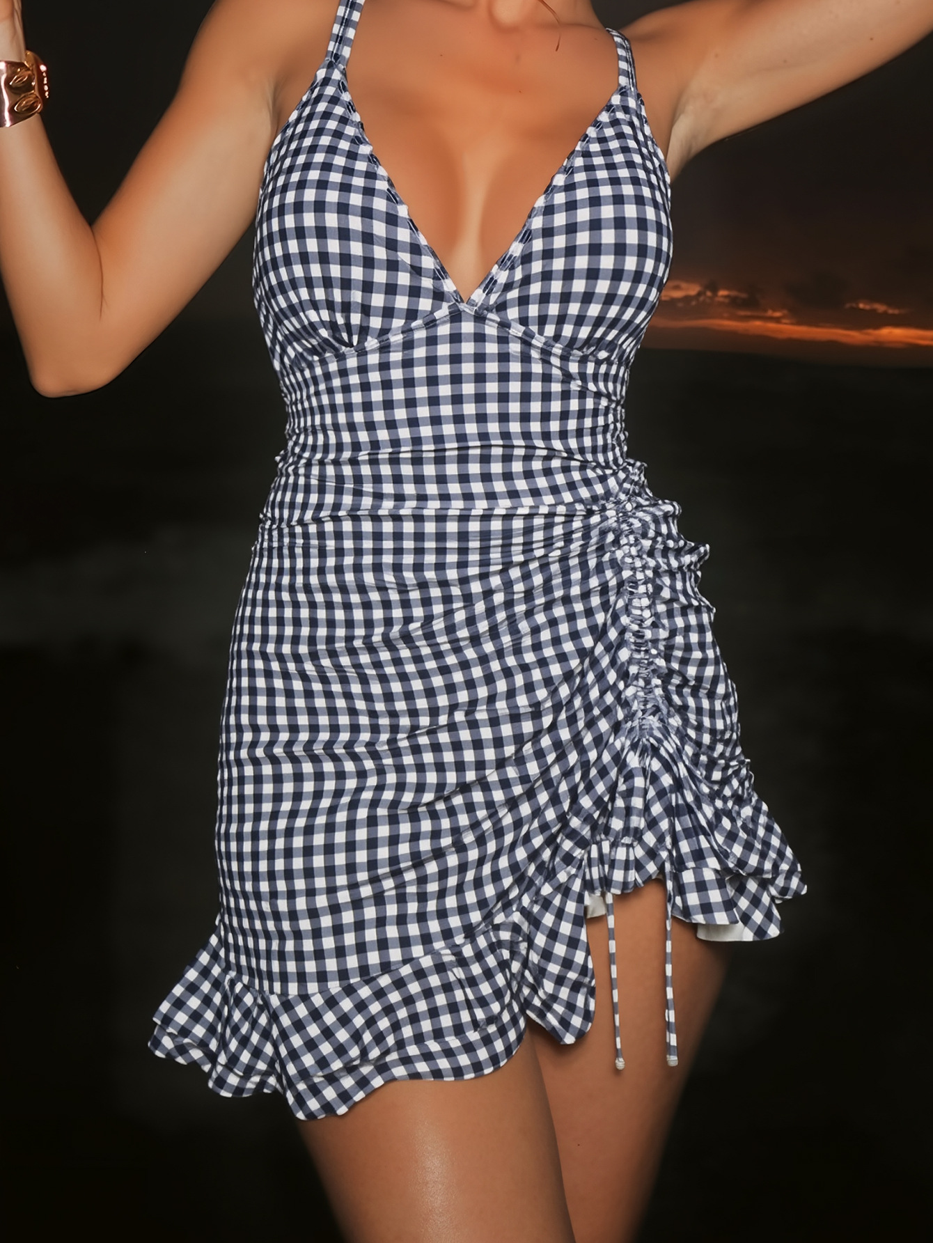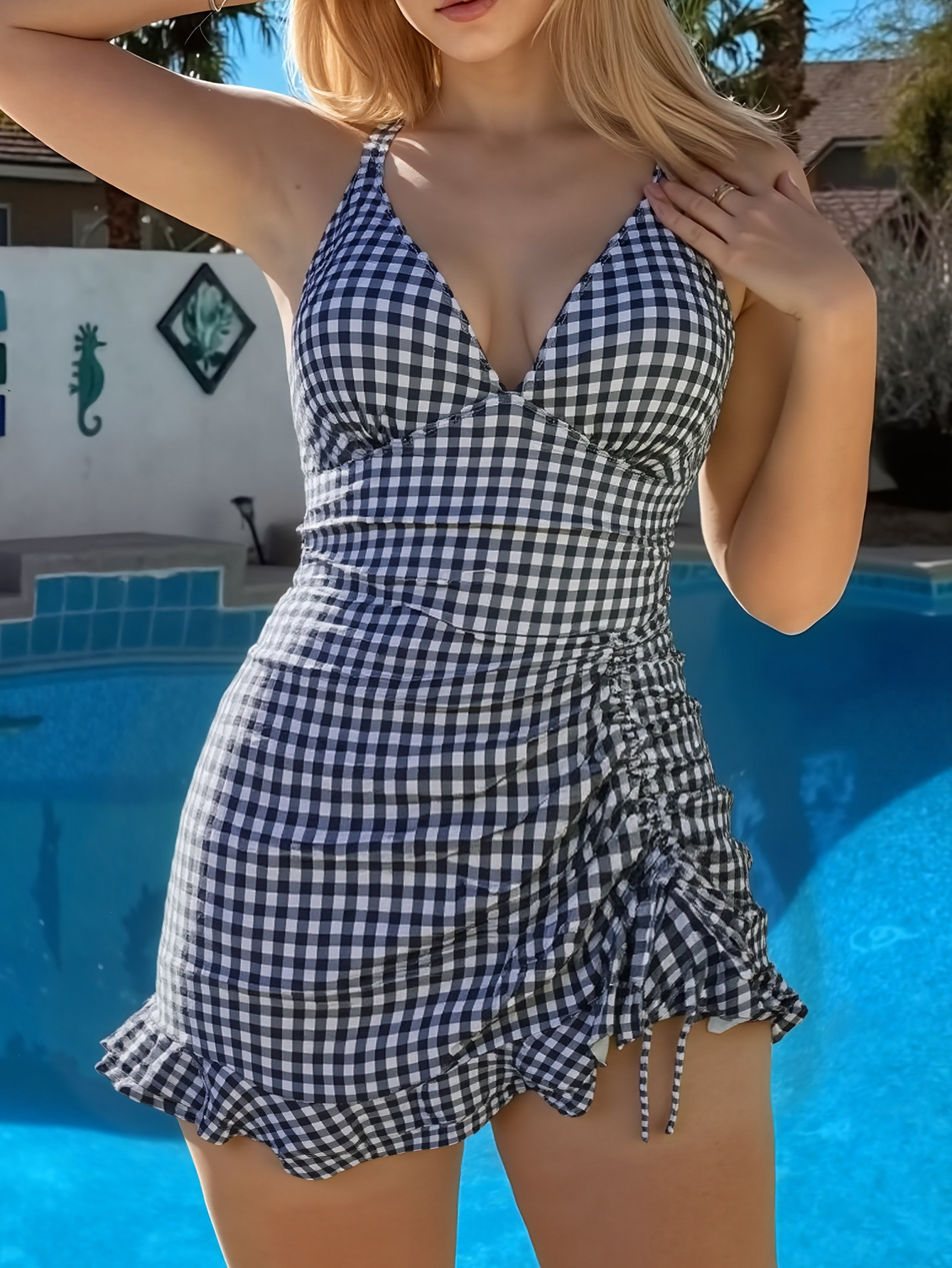 Maillot de bain une pièce à carreaux noirs et blancs