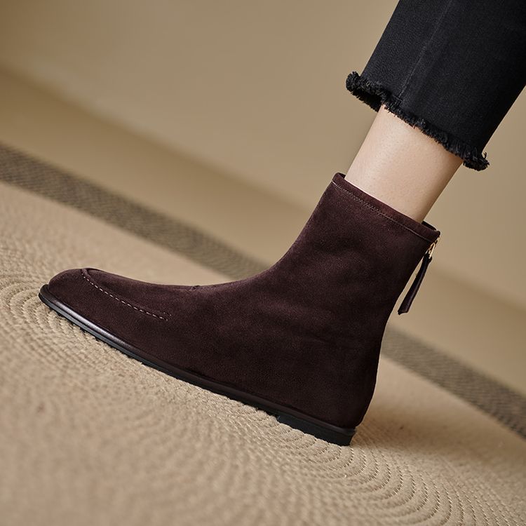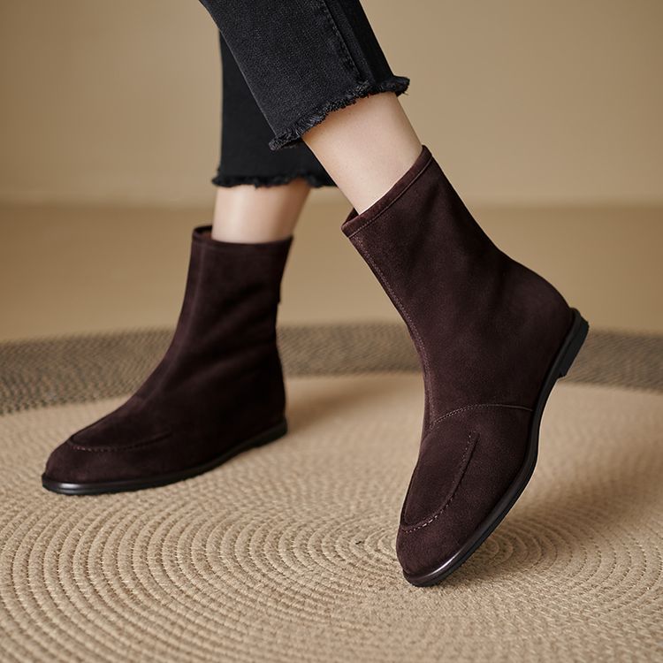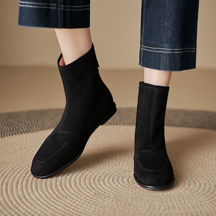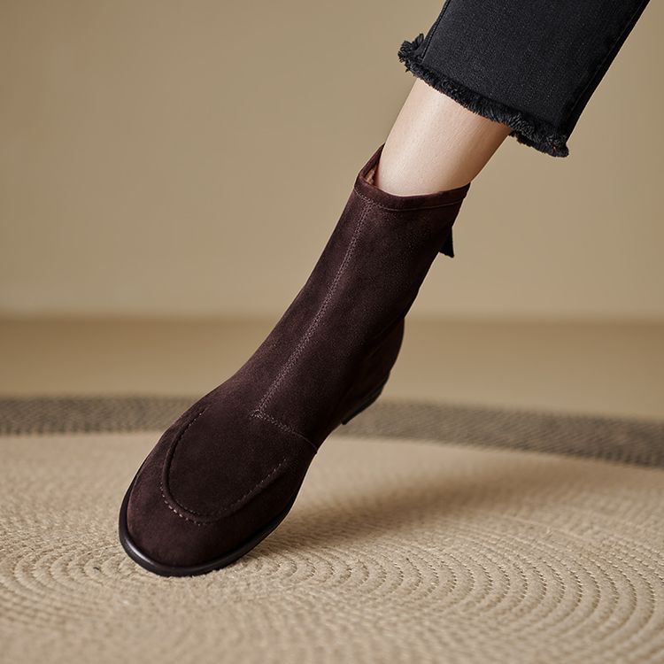 Alliez l'élégance minimaliste du style coréen au confort absolu d'un cocon de douceur. Conçues pour les femmes qui ne veulent pas choisir entre esthétique et bien-être, ces bottines en cuir d'agneau suédé sont vos meilleures alliées pour affronter le froid avec allure.