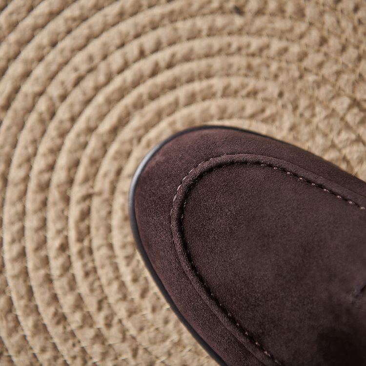 - Matière Noble : L'extérieur en véritable cuir d'agneau suédé offre un toucher velours raffiné et une souplesse qui s'adapte à votre démarche.